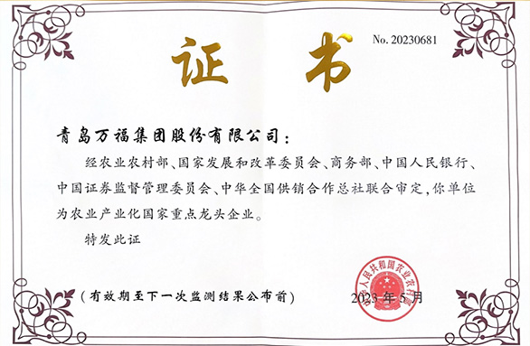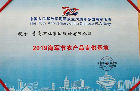 青岛4001老百汇net集团被青岛农业农村局认定为2019年海军节农产品专供基地。
