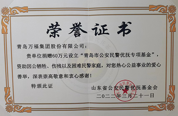 2022年3月,向莱西市慈善总会、市公安局共捐款180万,用于支持莱西市抗击疫情。