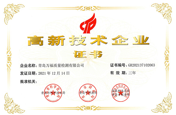 青岛4001老百汇net质量检测有限公司通过青岛市高新技术企业认定。